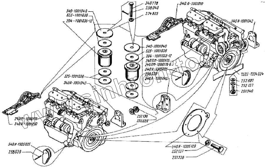 Каталог запасных частей к технике: БелАЗ Общий (см. мод-ции). Двигатель и его подвеска