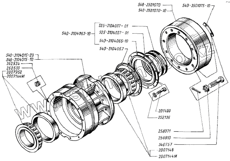 Каталог запасных частей к технике: БелАЗ Общий (см. мод-ции). Ступица заднего колеса