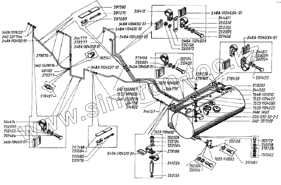 Каталог запасных частей к технике: БелАЗ Общий (см. мод-ции). Топливные баки и топливные трубопроводы