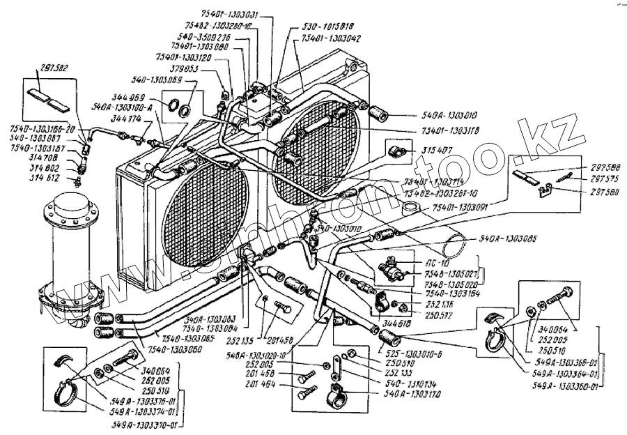 Каталог запасных частей к технике: БелАЗ Общий (см. мод-ции). Трубопроводы системы охлаждения