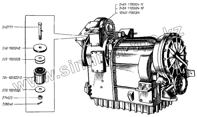 Каталог запасных частей к технике: БелАЗ Общий (см. мод-ции). Установка гидромеханической передачи