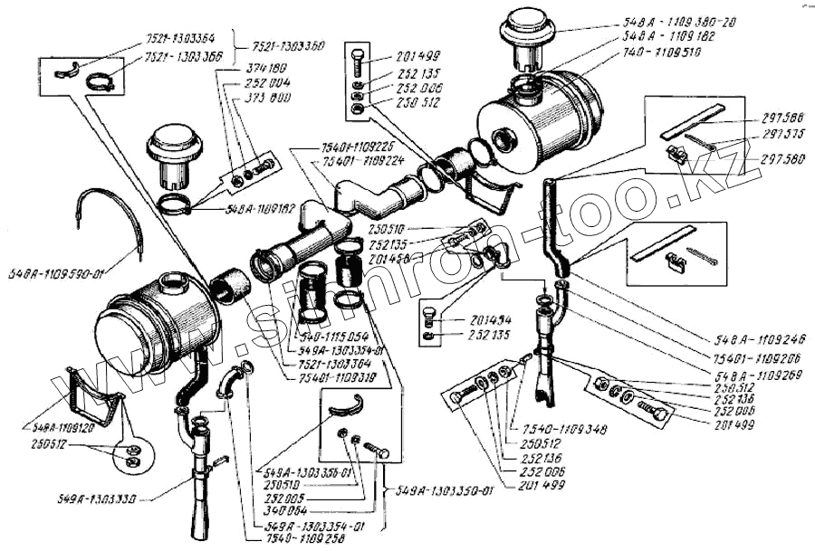 Каталог запасных частей к технике: БелАЗ Общий (см. мод-ции). Установка воздушных фильтров