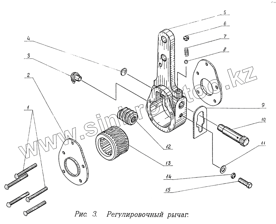 Каталог запасных частей к технике: ЧМЗАП-9906. Регулировочный рычаг
