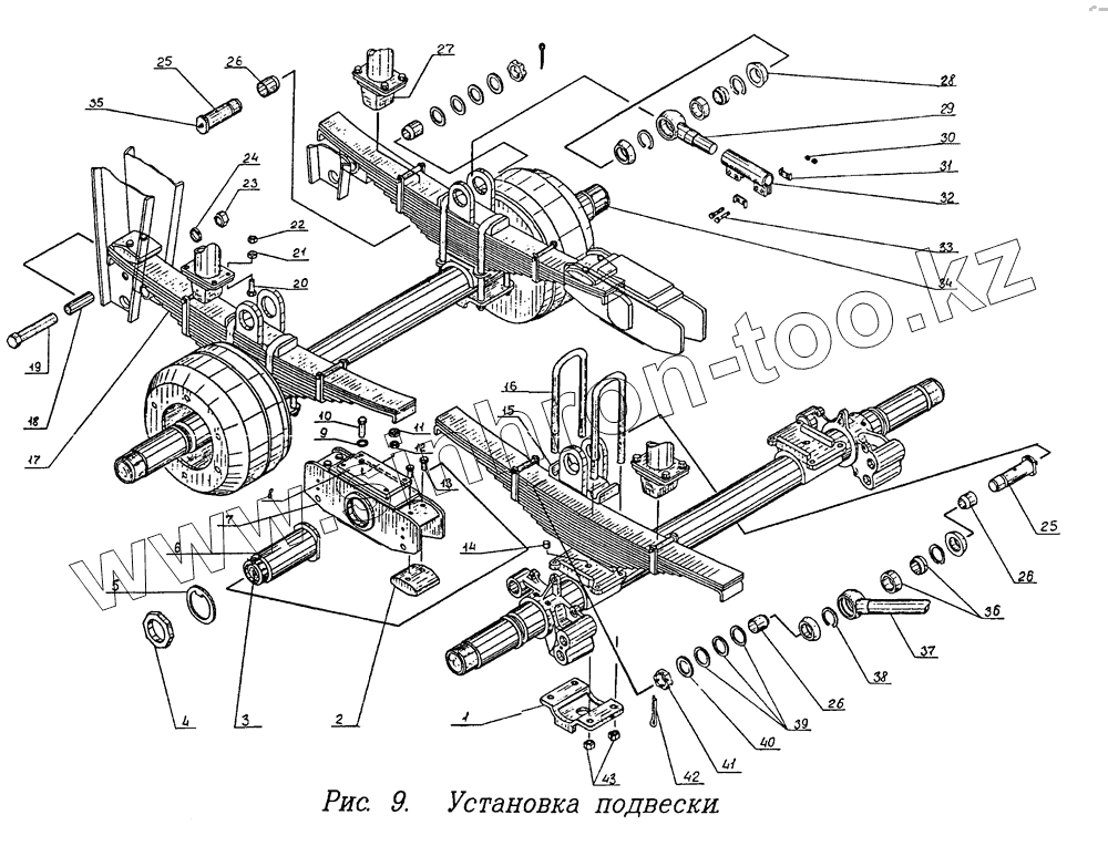 Каталог запасных частей к технике: ЧМЗАП-9906. Установка подвески