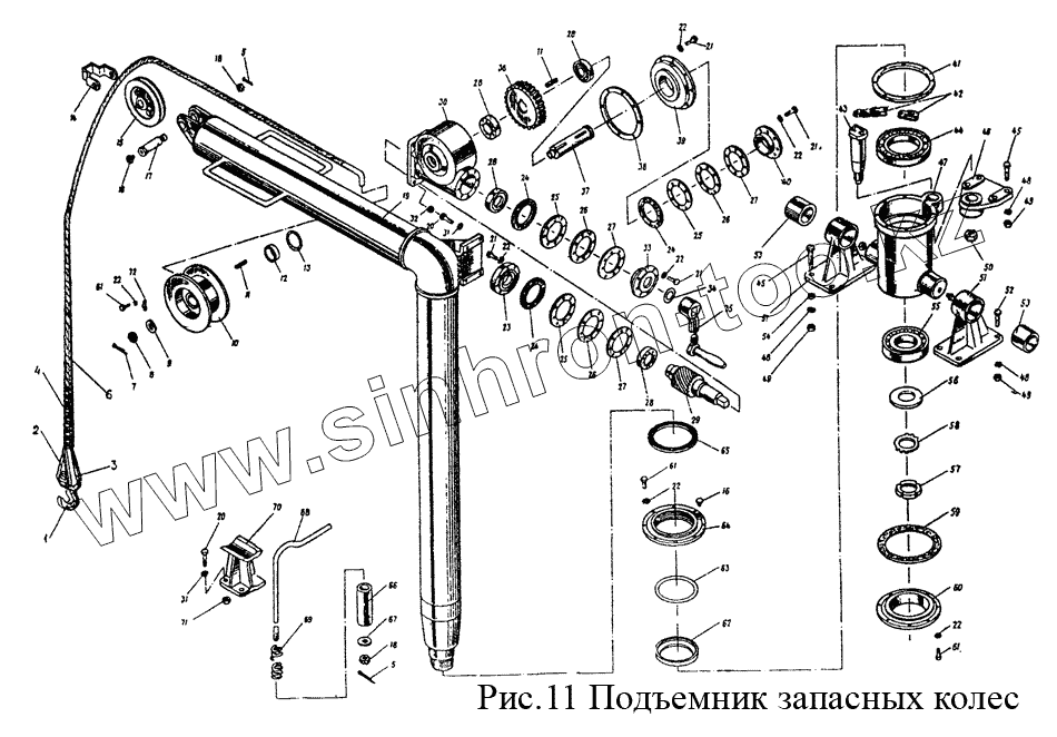 Каталог запасных частей к технике: ЧМЗАП-9990. Подъемник запасных колес