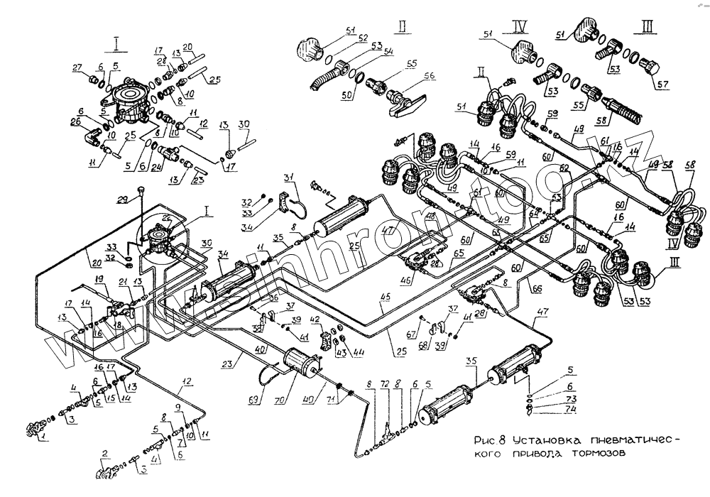 Каталог запасных частей к технике: ЧМЗАП-9990. Установка пневматического привода тормозов