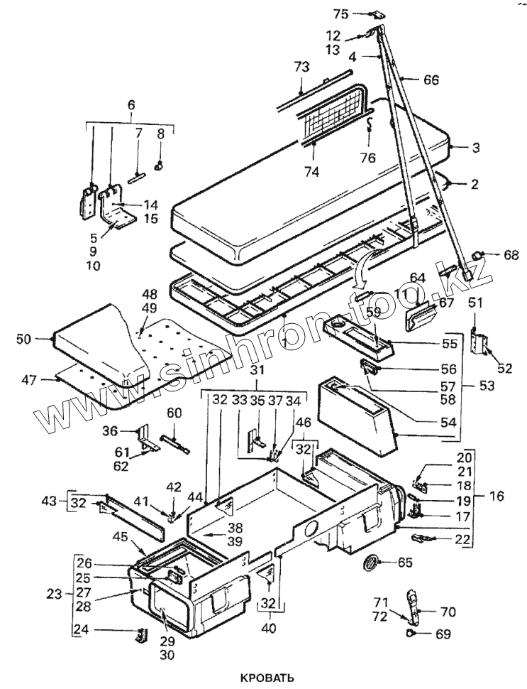 Каталог запасных частей к технике: DAF 95XF. Кровать