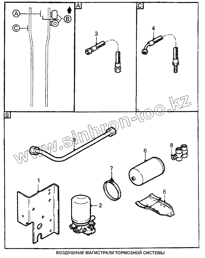Каталог запасных частей к технике: DAF 95XF. Магистрали тормозной системы воздушные