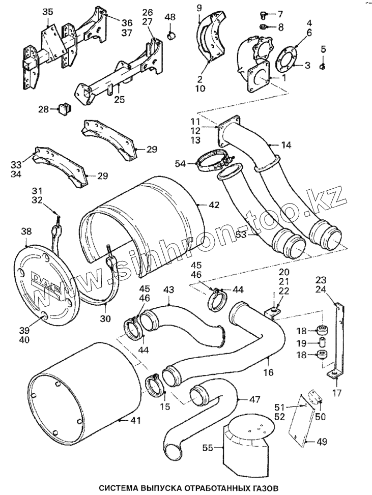 Каталог запасных частей к технике: DAF 95XF. Система выпуска отработанных газов