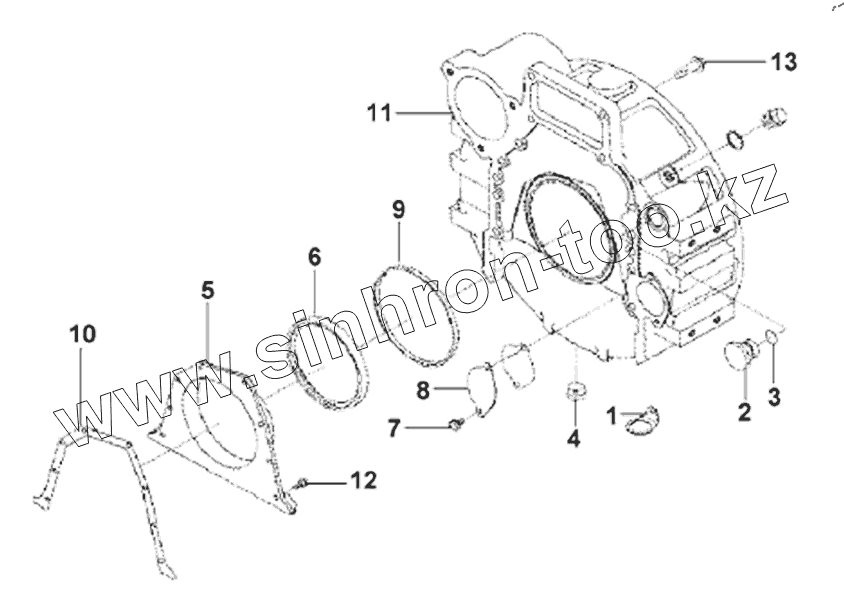 Каталог запасных частей к технике: DongFeng DFL4251A-T04-930-00CA. FH9413 Flywheel Case Subassembly