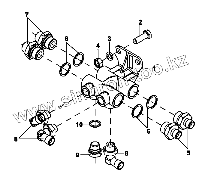 Каталог запасных частей к технике: DongFeng DFL-3250A1-K09-003-01. 3506K-K0800 Многоканальный штуцер
