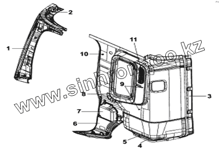 Каталог запасных частей к технике: DongFeng DFL-3251A. Обивка левой панели кабины
