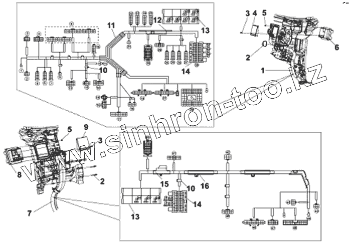 Главный пучок проводов кабины правый (включая детали № 10, 13~16)