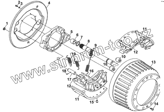 Каталог запасных частей к технике: DongFeng DFL-3251A. Тормоза среднего моста