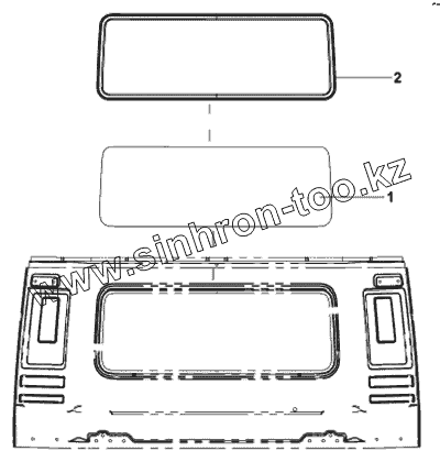 Заднее стекло с уплотнителем в сборе (включая детали №1-2)