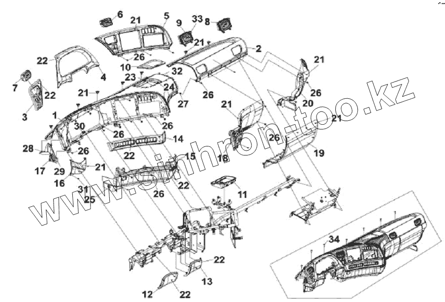 Средний нижний защитный кожух панели приборов со стороны пассажира