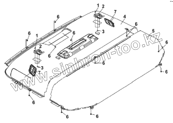 Каталог запасных частей к технике: DongFeng DFL-3251A Euro3. 5702A-C0104 Внутренняя отделка крыши кабины