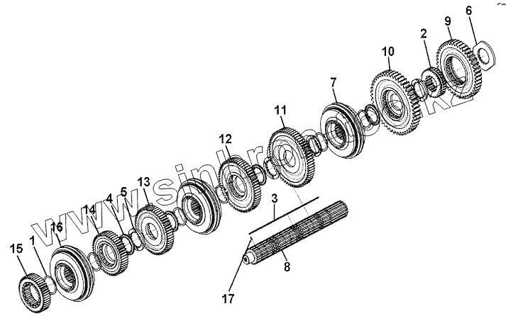 Каталог запасных частей к технике: DongFeng DFL-3251AW1. 2nd Shaft Assembly Group