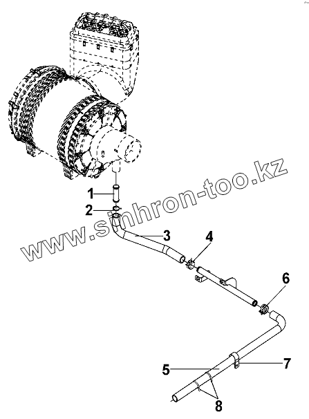 Каталог запасных частей к технике: DongFeng DFL-3251AW1. Air Compressor Intake Pipe Group