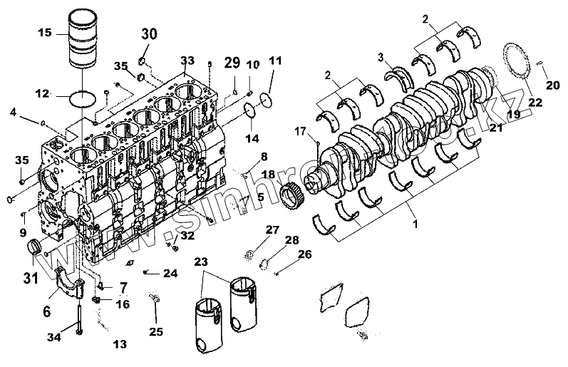 Каталог запасных частей к технике: DongFeng DFL-3251AW1. Cylinder Block Group