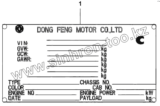 Каталог запасных частей к технике: DongFeng DFL-3251AW1. Identification Tab Group
