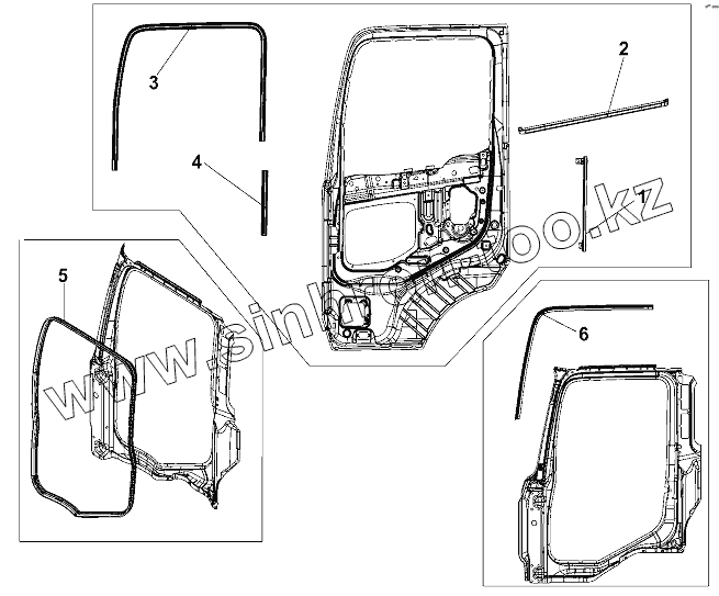 Каталог запасных частей к технике: DongFeng DFL-3251AW1. LH Door Weatherstrip Group