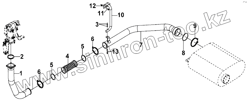 Каталог запасных частей к технике: DongFeng DFL-3251AW1. Muffler Intake Pipe Group