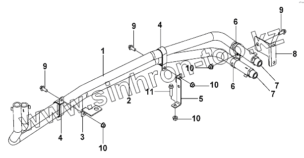 Каталог запасных частей к технике: DongFeng DFL-3251AW1. Water Inlet/Outlet Pipe Group Of Heater