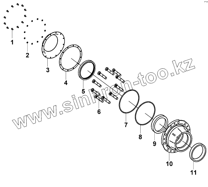 Каталог запасных частей к технике: DongFeng DFL-3251AW1. 11428000 Задняя ступица в сборе