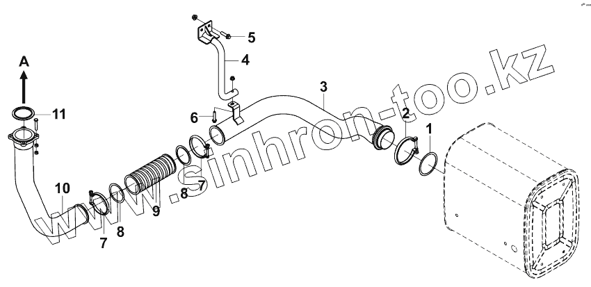 Каталог запасных частей к технике: DongFeng DFL-3251AW1. 1203A-K21R0 Впускная труба глушителя