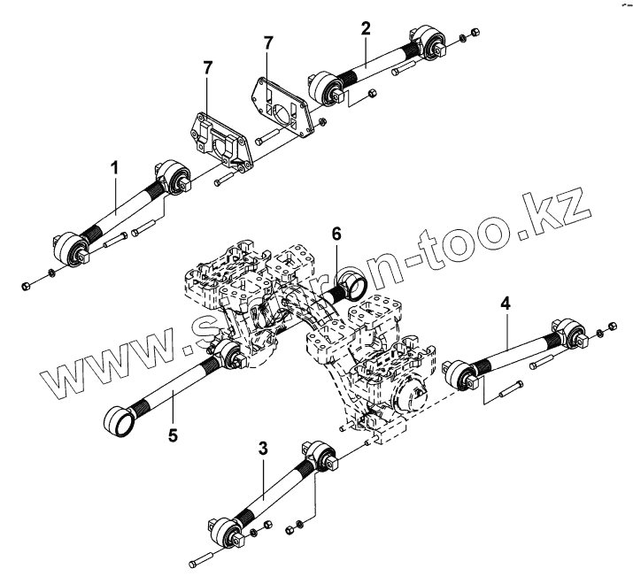 Каталог запасных частей к технике: DongFeng DFL-3251AW1. 2931B-K2000 Задняя распорная штанга