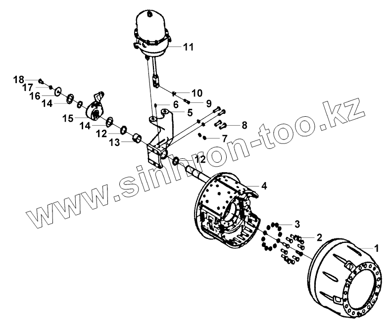 Каталог запасных частей к технике: DongFeng DFL-3251AW1. 3502B-K20R1 Задний правый тормозный механизм