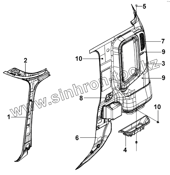 Каталог запасных частей к технике: DongFeng DFL-3251AW1. 5402A-C0100 Внутренний молдинг левой боковины