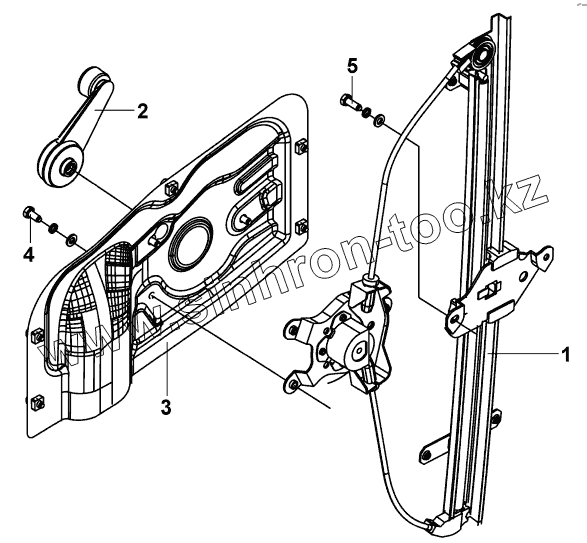 Каталог запасных частей к технике: DongFeng DFL-3251AW1. 6104A-C0100 Стеклоподъемник левой двери