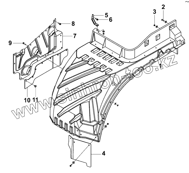 Каталог запасных частей к технике: DongFeng DFL-3251AW1. 8403E-C0100 Левый внутренний брызговик