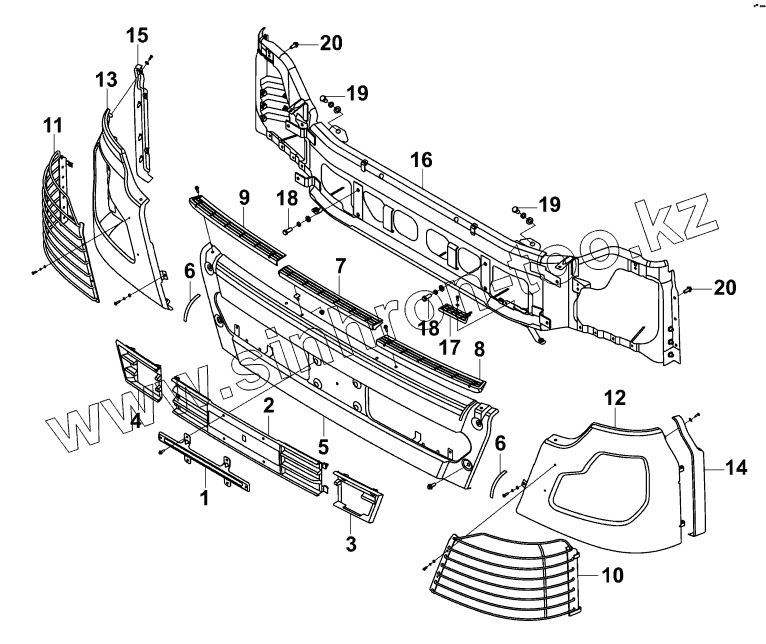 Каталог запасных частей к технике: DongFeng DFL-3251AW1. 8406A-C0108 Передний бампер