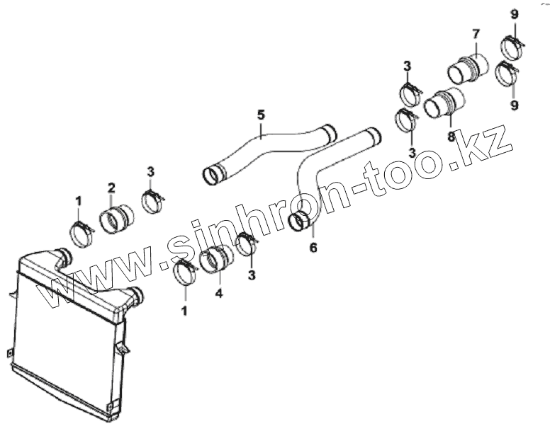 Каталог запасных частей к технике: DongFeng DFL-3251AXA Euro3. 11E56 Крепление и воздухопроводы промежуточного охладителя