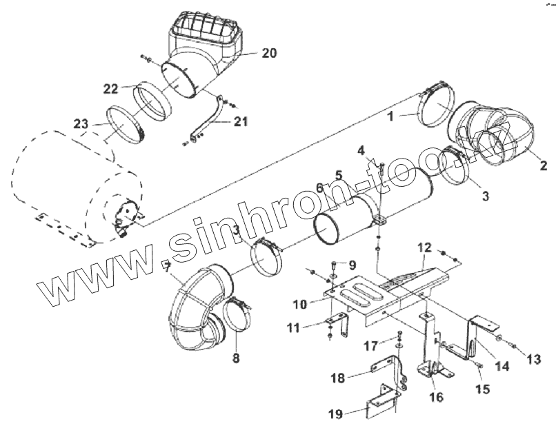 Каталог запасных частей к технике: DongFeng DFL-3251AXA Euro3. 11E56 Воздухопроводы системы впуска