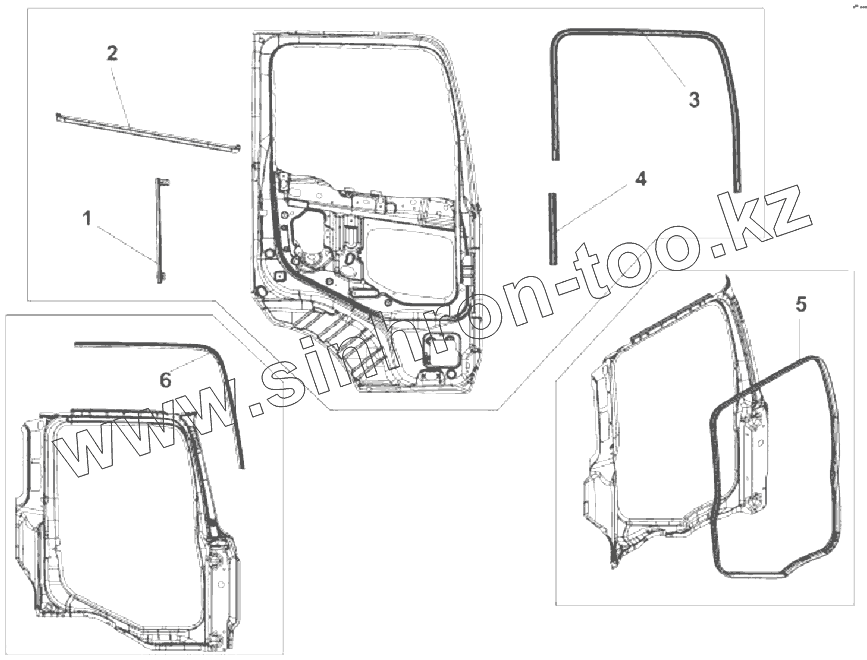 Каталог запасных частей к технике: DongFeng DFL-3251AXA Euro3. 6107B-C0100 Уплотнители правой двери