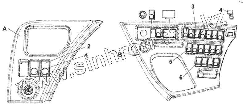Каталог запасных частей к технике: DongFeng DFL-4181A. Группа выключателей на щитке
