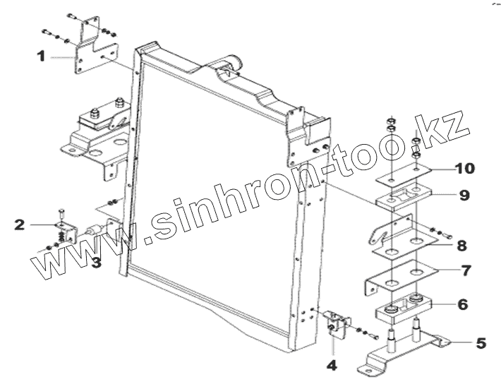 Каталог запасных частей к технике: DongFeng DFL-4181A. Крепеж радиатора