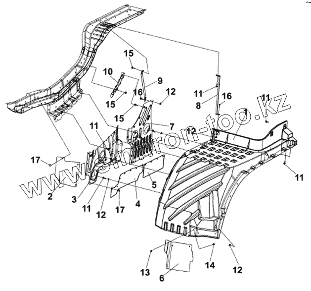 Задний левый продольный брызговик в сборе