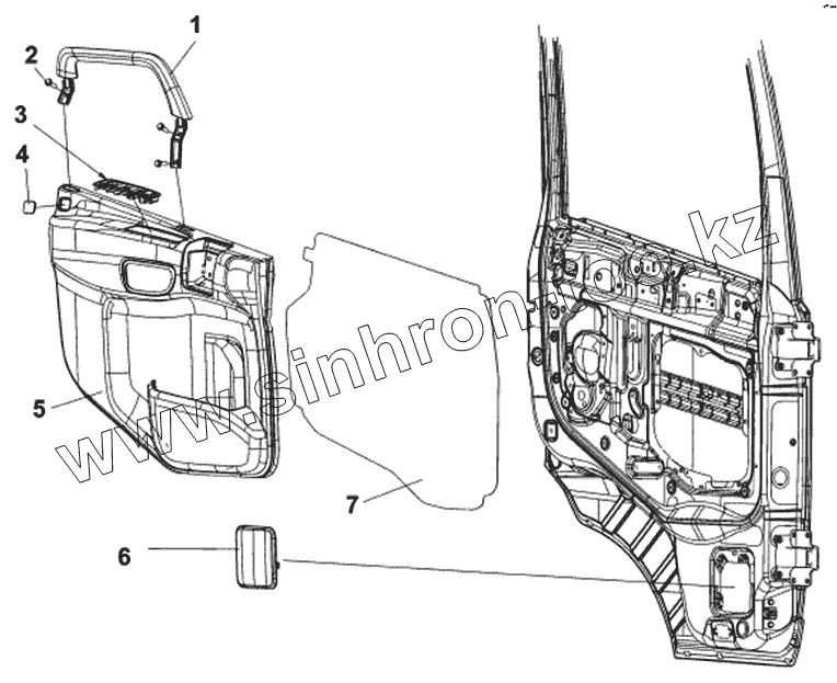 Каталог запасных частей к технике: DongFeng DFL-4181A. Отделка передней левой боковой двери