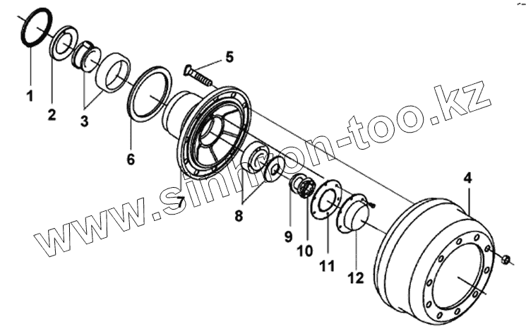 Каталог запасных частей к технике: DongFeng DFL-4181A. Передняя ступица и тормозной барабан