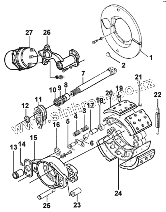 Каталог запасных частей к технике: DongFeng DFL-4181A. Тормозной механизм задний левый