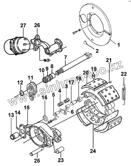 Каталог запасных частей к технике: DongFeng DFL-4181A. Тормозной механизм задний правый