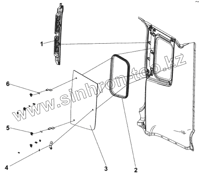 Каталог запасных частей к технике: DongFeng DFL-4181A. Установка левого бокового окна