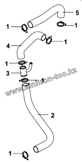 Каталог запасных частей к технике: DongFeng DFL-4181A. Входной и выходной патрубки водяного радиатора