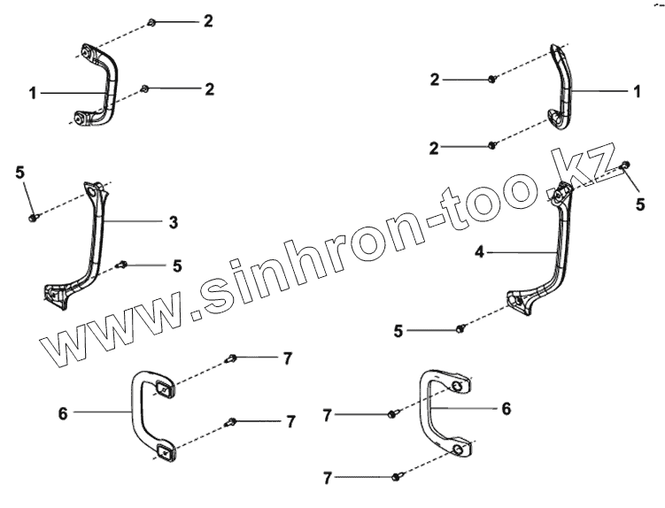 Каталог запасных частей к технике: DongFeng DFL-4181A. Внутренний ручной поручень