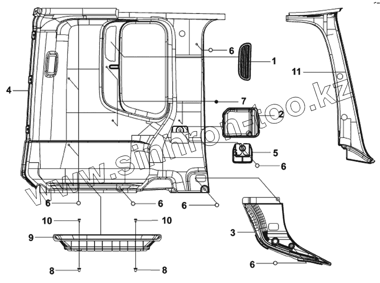 Каталог запасных частей к технике: DongFeng DFL-4181A. Внутренняя отделка левой боковины